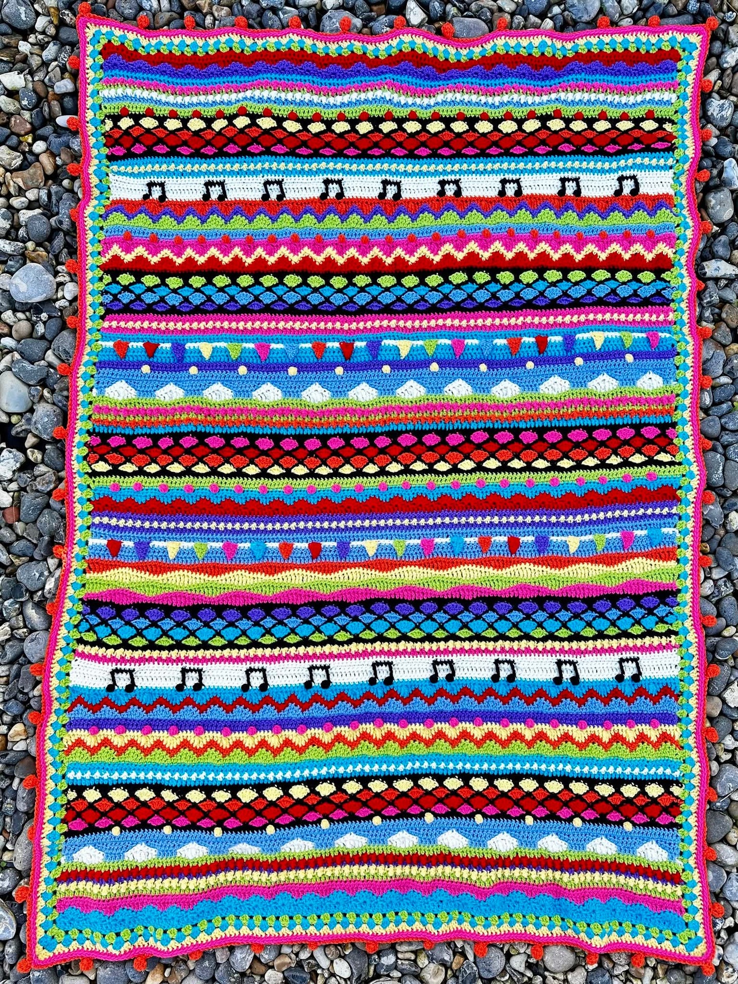 community, and creativity, with rows bursting in bold, uplifting shades and a rhythmic mix of stitches. It’s the perfect project to lift hearts and hooks this season!