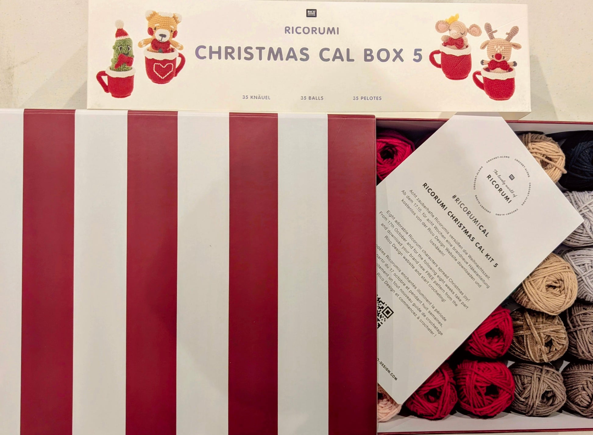 Contains 35 balls of ricorumi cotton to create eight Christmas cup characters.