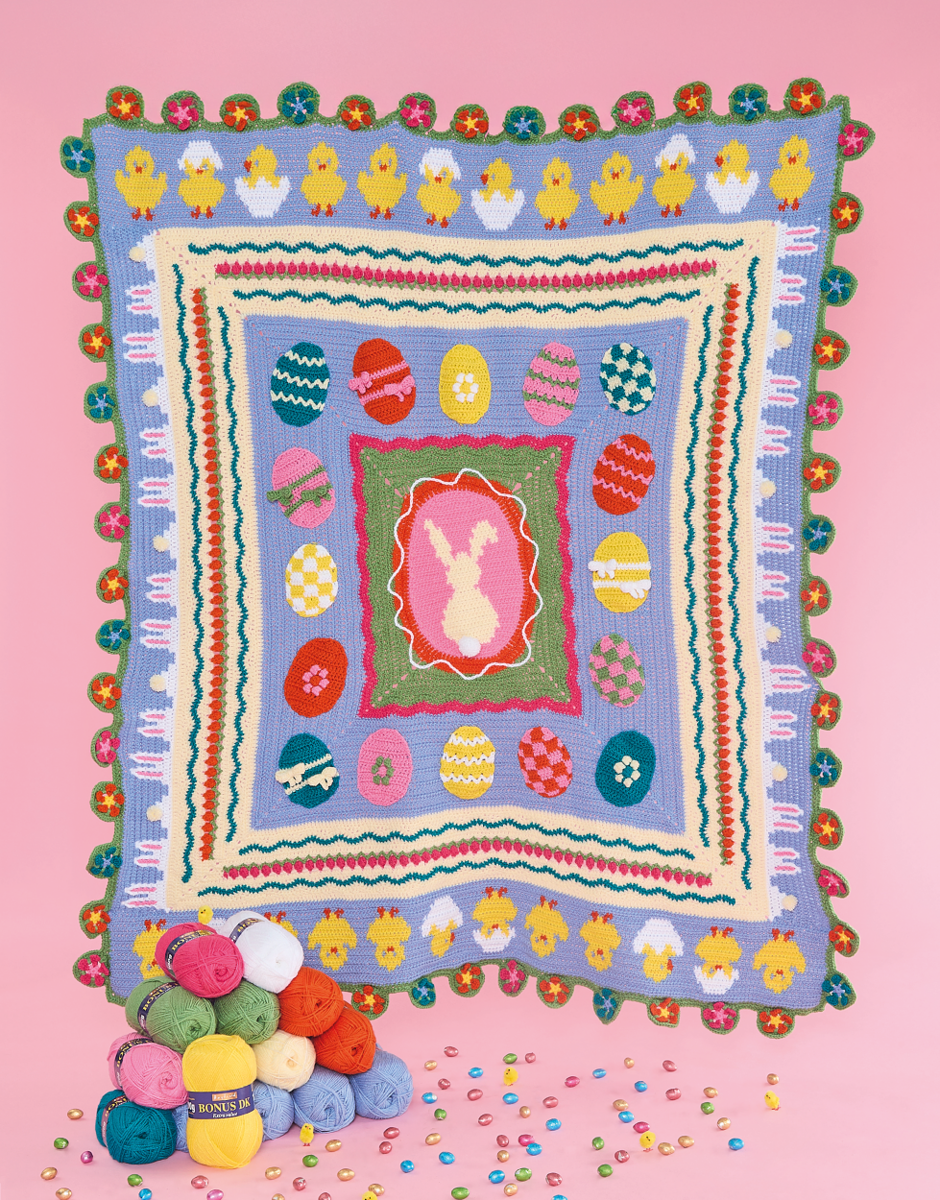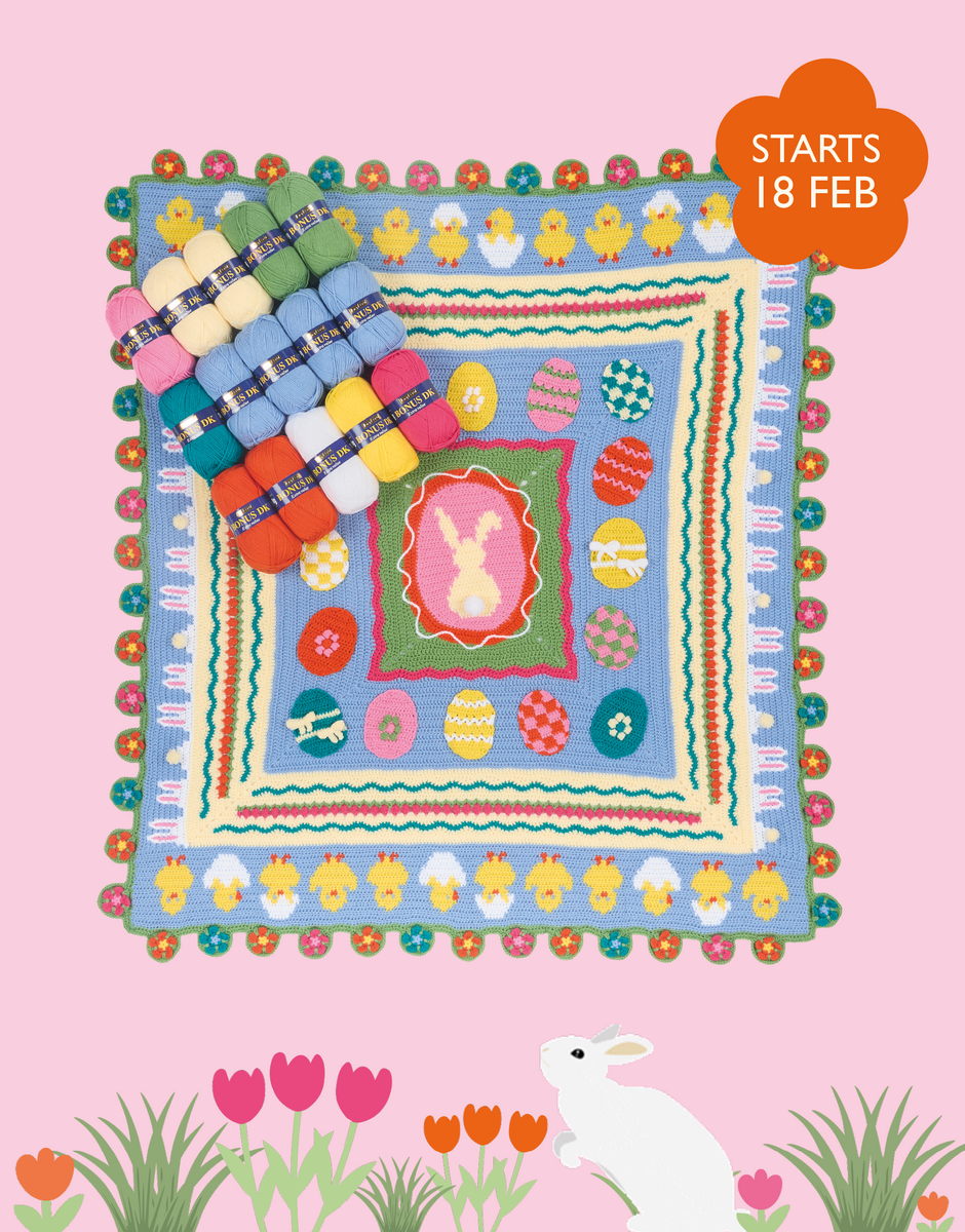 The ‘Easter Egg’ CAL is perfect for beginners, but will be enjoyed by crocheters of any experience. The blanket Starts with simple stitches and progresses through colour techniques and texture to entertain all crocheters.